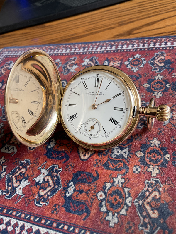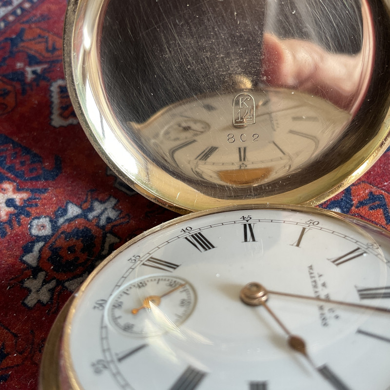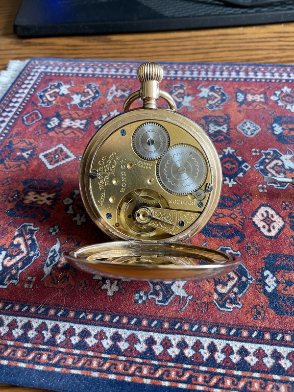 Latest acquisition - thrift shop find.. was in pretty rough and dirty condition, but some TLC and job;s a good 'un.  it's a Waltham "Bond Street" 14s (made for the export market to the UK) model 1895 7j.. runs a treat, and the case turned out to be full 14K gold hunter with dust shield