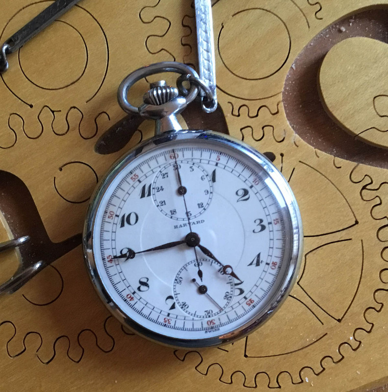 Here's an interesting one in the collection.. 1933 Harvard pocket with chronograph.. runs like a champ.
